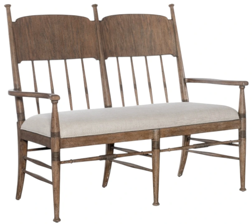 Celebrating the natural beauty of a simpler time, the inviting Americana dining bench has a nostalgic design including a spindle-style back with carved accents on the spindles and frame. The fabric seat is upholstered in the linen biscuit performance fabric with welt trim.Read More
