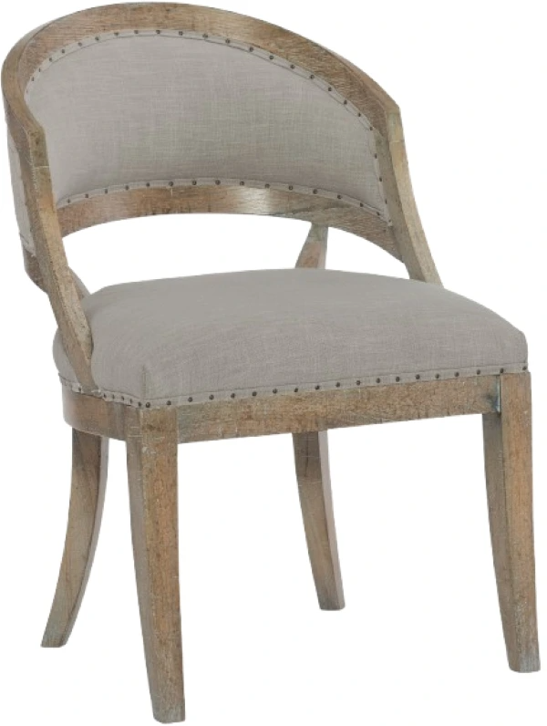 This lyrical silhouette offers comforting style with its neutral palette and textural blend, combining a soft gray Antwerp 100% linen fabric trimmed in gimp welt with tiny nailheads, with an antique milk paint finish. The nearly opaque milk-colored paint is applied over light brown for a brushstroke effect, filled with character.Read More