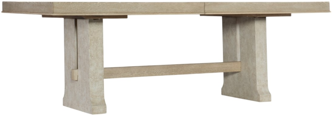 Linger for memorable meals with family and friends at this inviting modern farmhouse-styled table that offers a retreat from your fast-paced lifestyle. Crafted of oak veneers, the Cascade rectangle dining table features a stretcher that joins the 2-pedestal base, with the entire base finished in a creamy-colored textured gesso with crackle.Read More