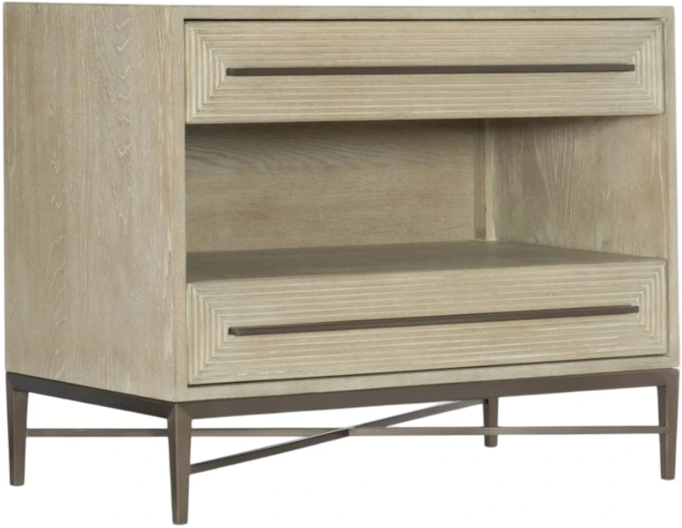 With an open and airy profile, the Cascade two-drawer nightstand offers chic style and a calming neutral color palette to your space. Crafted of oak veneers, it is finished in terrain, a soft taupe color made casual and tactile by dry brushing.Read More