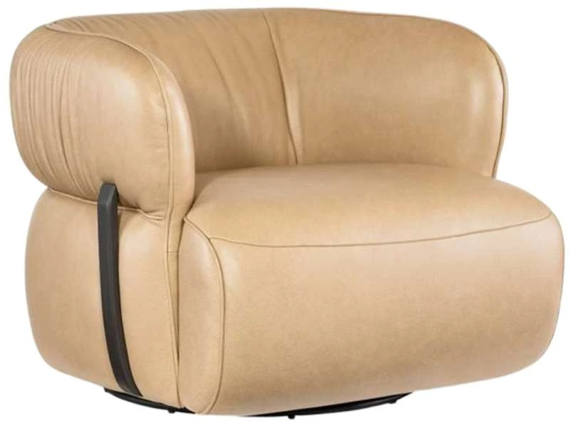 The McGuire swivel chair combines modern transitional style with functionality. Upholstered in premium semi-aniline leather, the chair features a barrel design, memory swivel function, and dark walnut accents. Ideal for living rooms, it offers both luxury and practicality with a comfortable foam core and sleek design.Read More