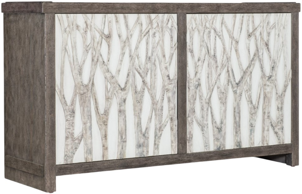 Finish: Dark wood with raised tree and branch motif on contrasting white background on door fronts