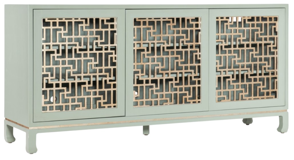 Doors have contrasting silver leaf champagne-colored open fretwork and trim