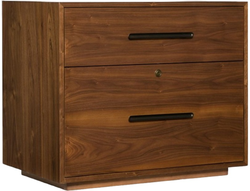With a craftsman flair and quality, the Elon lateral file is crafted of flat cut walnut veneers with a satin medium wood finish and dark bronze metal bar pulls. The top drawer is a utility drawer, while the bottom drawer is a locking file drawer with pendaflex letter/legal filing system.Read More