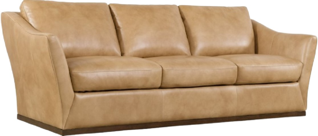 Timeless yet casual, the Fairfax stationary sofa in dark blond leather features a streamlined silhouette with flared arms, a low-profile wood plinth base, and three generously cushioned seats. Welt trim adds refined detail, making this an inviting and stylish anchor for relaxed living spaces.Read More