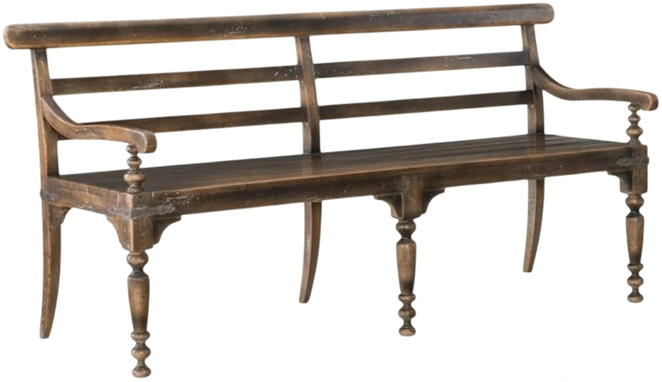 Set a genteel and gracious tone with this softly-shaped bench with turned legs and a slat back. The timeworn saddle brown finish imparts an authentic American character. Comfortably seats three. Inspired by the most beautiful examples of American countryside, hooker furniture's hill country collection imparts an authentic American character.Read More