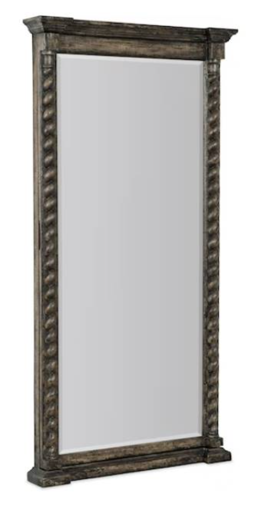 Adorned with barley twist detailing down both sides, capped off by an architectural crown, the Vail Floor Mirror is a striking focal point piece for any room. Inside, there is a black-felt-lined treasure chest of storage with hooks and hanging pockets for necklaces, earrings, bracelets, rings and small accessories.Read More