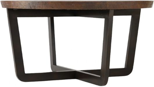 Rustic modern goes bold with the Parkcrest Round Cocktail Table, combining an aged copper top with a forged metal base in a dark finish for an earthy and casual appeal. Metal bases in a rustic casual finish with aged copper tops with a circle design. A very transitional look that can go rustic or just casual.Read More