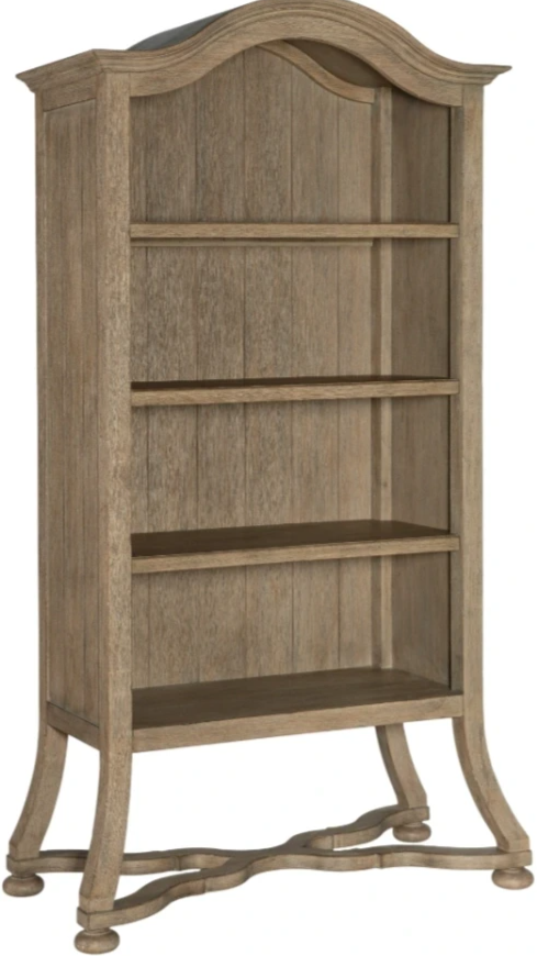 Stylish details include an arched top trimmed in shaped crown molding, a planked back panel and a wavy X-stretcher connecting 4 bun feet. The bookcase has 3 adjustable/removable shelves and one fixed shelf for ample storage and display. The Work Your Way program focuses on the new reality many consumers face as they continue to do much of their work from their homes. Available in five design styles, the program offers an assortment of key home office pieces for a variety of spaces whether a dedicated executive home office or a more casual workstation. Ranging in scale and functionality, all of the groups within Work Your Way include an executive desk, a junior executive desk, a writing table, a lateral file, a credenza and hutch and a bookcase.