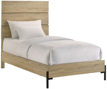 The modern Newhall melamine bedroom group features a perfect balance of clean lines, chic styling and practicality. The group features a light vintage oak melamine with metal legs and wide drawer pulls with a dark burnished black finish.Read More