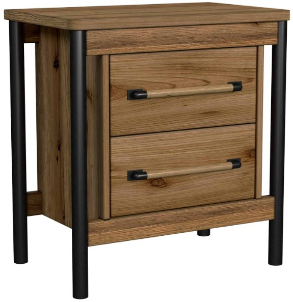 The industrial modern style of the Norcross bedroom group blends the natural beauty of its rustic veneer with its clean lines and abundant metal accents throughout. This bedroom collection features custom designed wood and metal hardware and is finished in a warm and inviting hickory finish.Read More