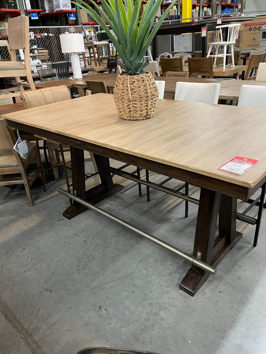 *As is item* Item has been returned and has some indenting. The Transitions Dining Collection is constructed from solid acacia and is offered in a beautifully rustic two-toned driftwood and sable finish. Two extension table options are offered in counter and dining variations.Read More