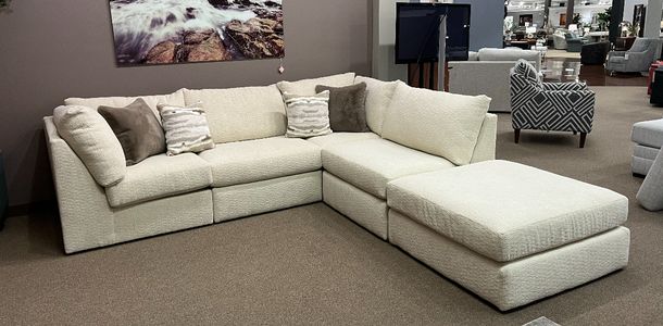 The Customizable Collie 5-Piece Modular Sectional offers ultimate flexibility and comfort. With loose back cushions and an oversized ottoman, this spacious sectional effortlessly adapts to your living space for a cozy, stylish seating experience.Read More