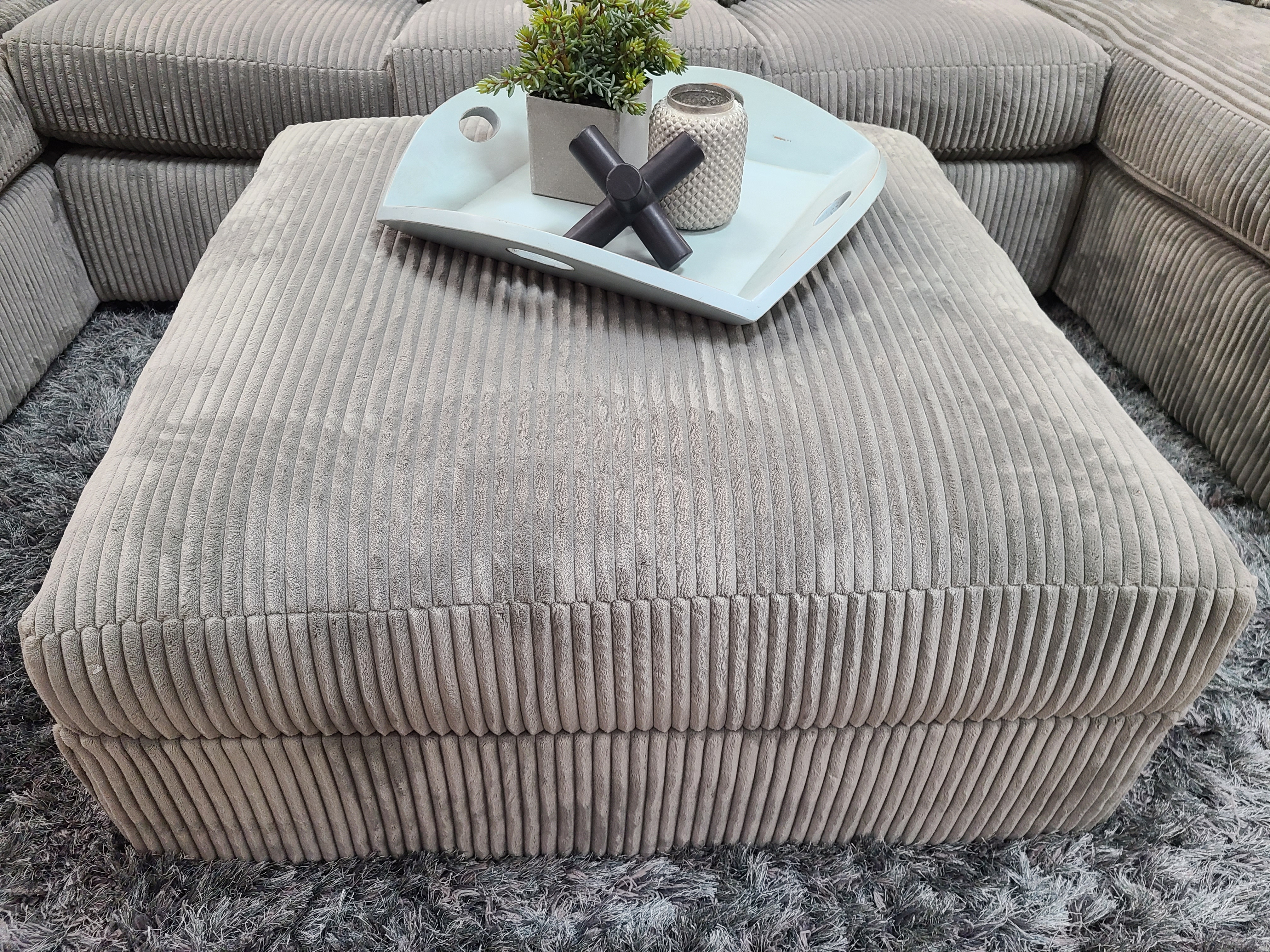 Intermountain Furniture Snowy Cocktail Ottoman. This ottoman has the look of corduroy and the soft plush feel of your favorite blanket. Large enough to be used as a cocktail table or add to your sectional to create a relaxing space to watch a movie or read your favorite book.Read More