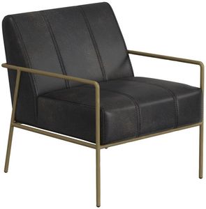 Introducing the Aragon armchair, its gold metal frame and luxurious upholstery make this accent chair the perfect piece to add a modern touch to any room. Upholstered in black faux leather, it exudes sophistication and comfort. Perfect for living spaces, offices, or reading nooks.Read More