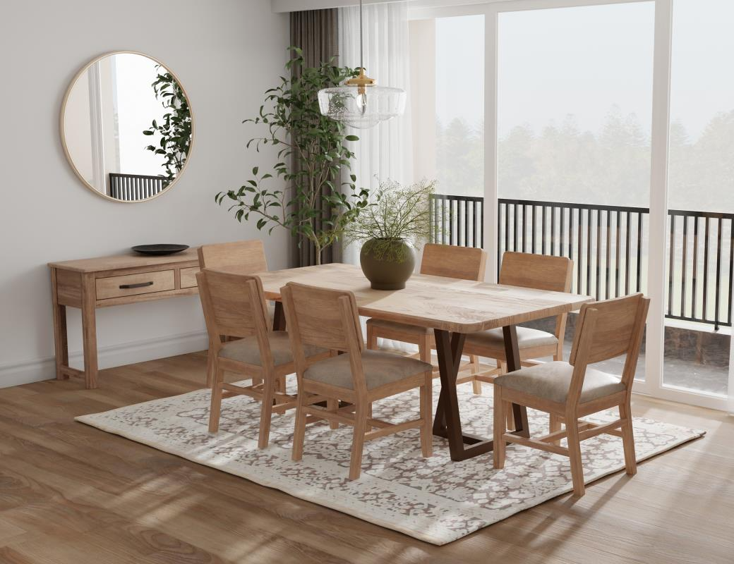 The Natural Parota dining table features a translucent multi-step lacquer finish that highlights the natural wood grain. The dining chairs offer a seamless blend of comfort, style, and practicality, enhancing the quality of your dining experience. The collection exudes sophistication and timeless elegance, making a striking statement in any bedroom.Read More
