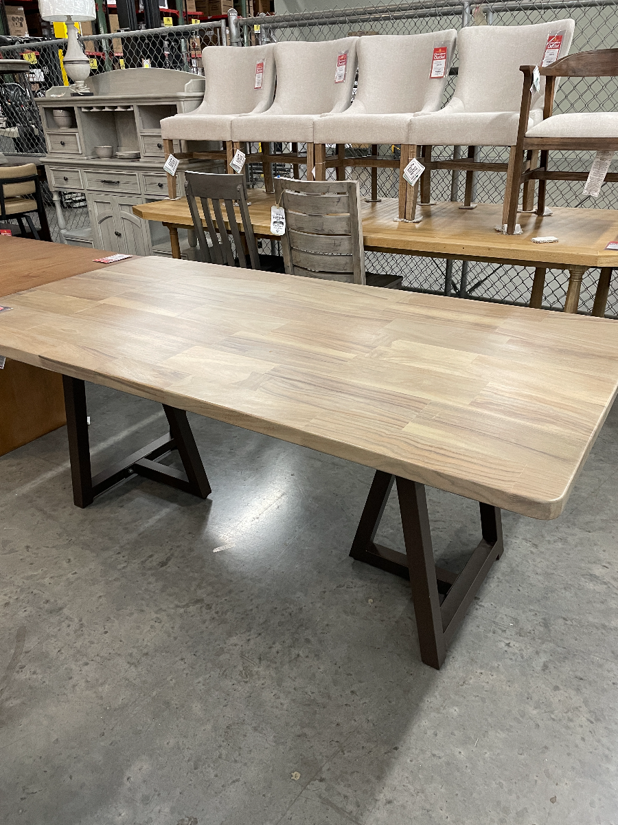 *As is item* Item has been returned and has a dull finish and some indenting. This dining table from Natural Parota is a stunning and sophisticated furniture piece that adds a touch of elegance to any space. It is sure to make a bold statement.Read More