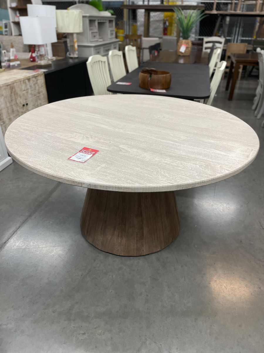 *As is item* Item has been returned and is cracked. The Sahara Dining Table features exquisite two-tone finish on wire-brushed, solid mango wood. The floating top features finger joinery assembly and iron brackets underneath for additional strength.Read More