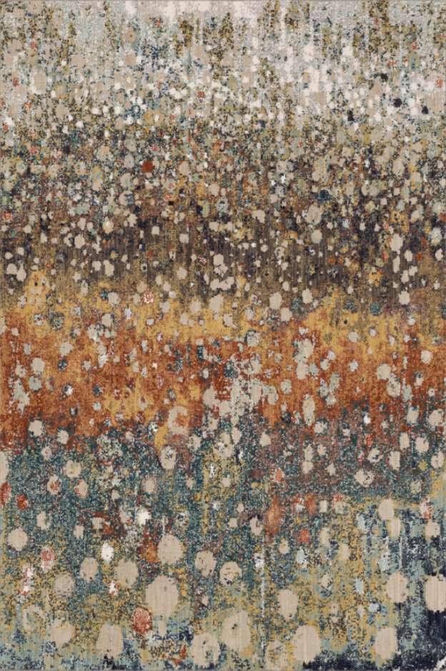 Sprinkles of rose gold hues cascade over the Torrent's canvas like water droplets falling down in a summer rain. Washes of smoky grey, biscotti, robin's egg and mallard green fill the space. Subtly shimmering sprinkles of viscose add a glimpse of glamour to the velvety texture of Karastan Rugs' exclusive SmartStrand yarn.Read More