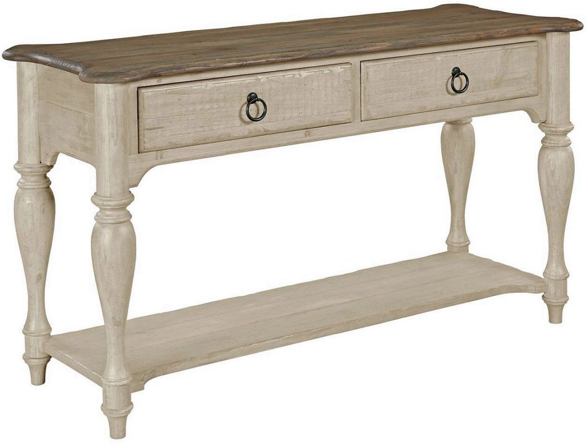 The Kincaid® Weatherford Cornsilk Sofa Table showcases a warm cornsilk finish on pine wood, highlighting its inviting character and craftsmanship. Though designed as a sofa table, its versatile form allows it to function beautifully as an accent piece, console, or hallway table, adding charm and utility to any room.Read More