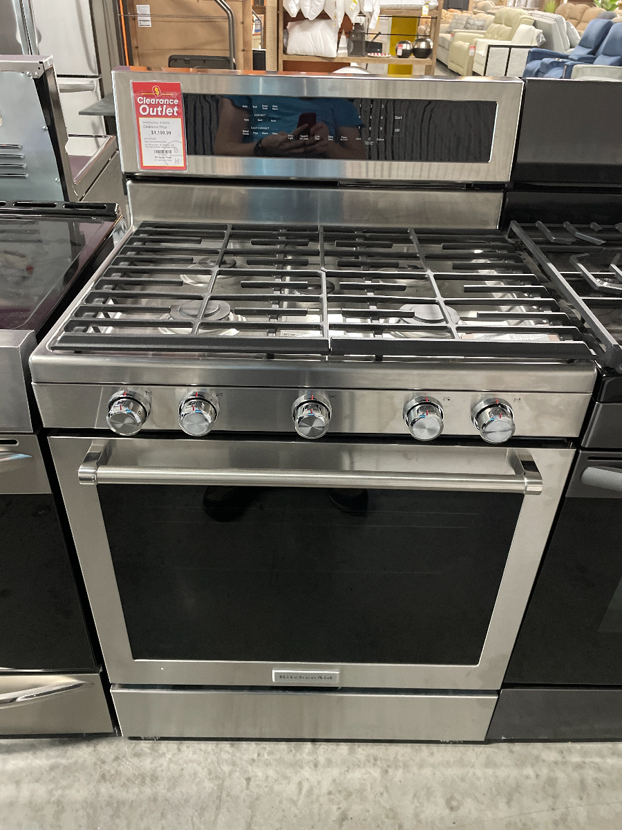 Item was used as a previous floor model and is dented. Item comes with 1 year BLVD warranty. This beautiful gas freestanding range produces flawless cooking results with Even-Heat™ True Convection. The unique bow-tie design and convection fan ensure the inside of the entire oven is heated to, and stays at, the perfect temperature. The oven is 5.8 cu ft., providing a large capacity that’s perfect for preparing multiple dishes at once. The cooktop has 5 burners ranging from 5,000 to 18,000 BTU, letting you go from a rolling boil to a delicate simmer.Read More