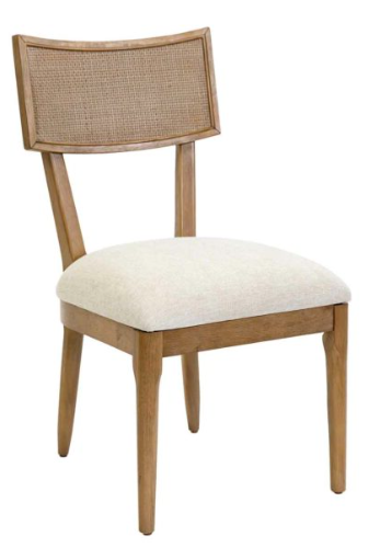 Dining chair with upholstered seat and woven rattan back rest for added comfort