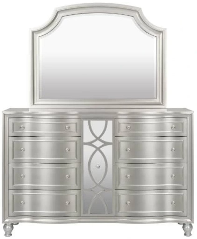 Meet the Reflection dresser mirror in silver, designed to complement the matching Reflections dresser, this mirror is not just a functional piece it's a marvel of craftsmanship, offering unparalleled clarity and style to your bedroom ensemble.Read More