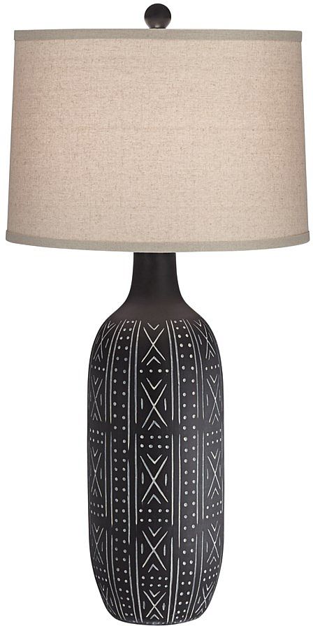 The Pacific Coast® Lighting Blackwater Charcoal Table Lamp features a poly body with white designs and a natural linen shade.Read More
