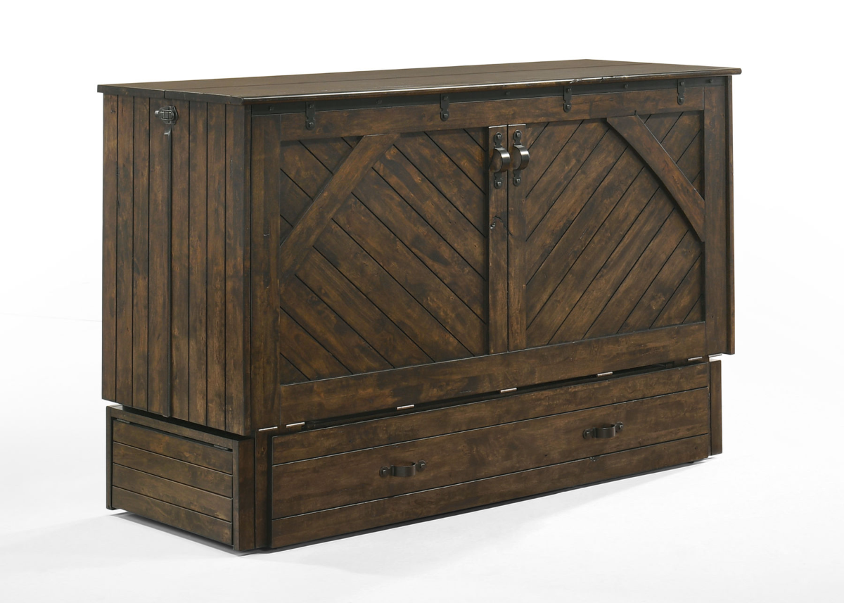 Ranchero Queen Size Cabinet Style Murphy Bed & Mattress in Bakar Finish. Our Ranchero Murphy Cabinet Bed is a truly instant guest bed. Convert it from handsome cabinet to comfy bed in less than a minute. When all closed up it just takes 10 square feet of floor space. Easy to use, easy to love. Includes flip up nightstands for an additional charge.Read More