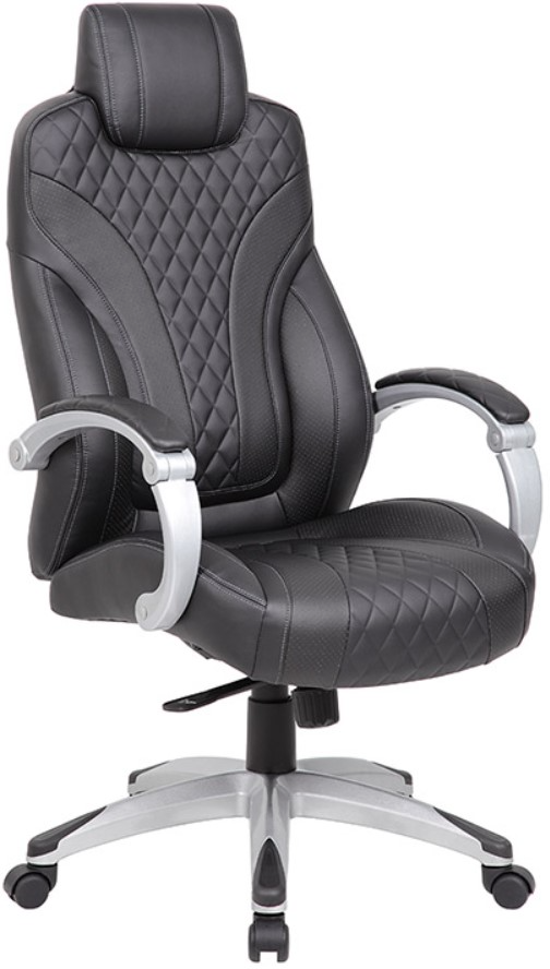 This hinged arm executive chair is beautifully upholstered in black Caressoftplus Vinyl for the kind of comfort and durability required for a long day at the office. It features a designer stitched back cushion and pivoting hinge arms that allow the seat and back to move independently.Read More