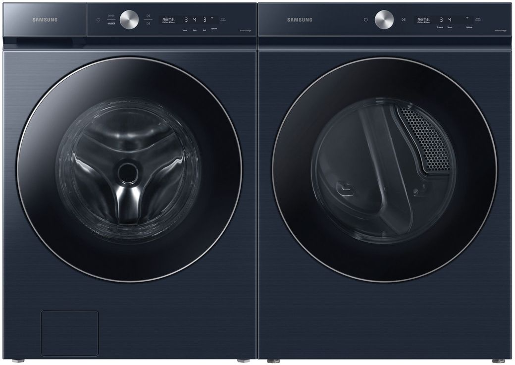 Samsung Bespoke 8900 Series Brushed Navy Front Load Laundry Pair with a 5.3 cu. ft. capacity front load washer and a 7.6 cu. ft. capacity front load gas dryer.Read More