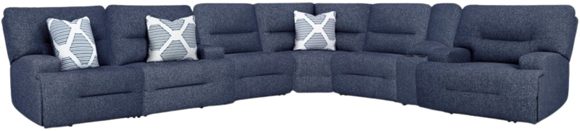 Includes 7 Modular Pieces: Left-arm facing power recliner, console with storage, wedge, oversized power recliner, right-arm facing power recliner and 2 power armless recliners