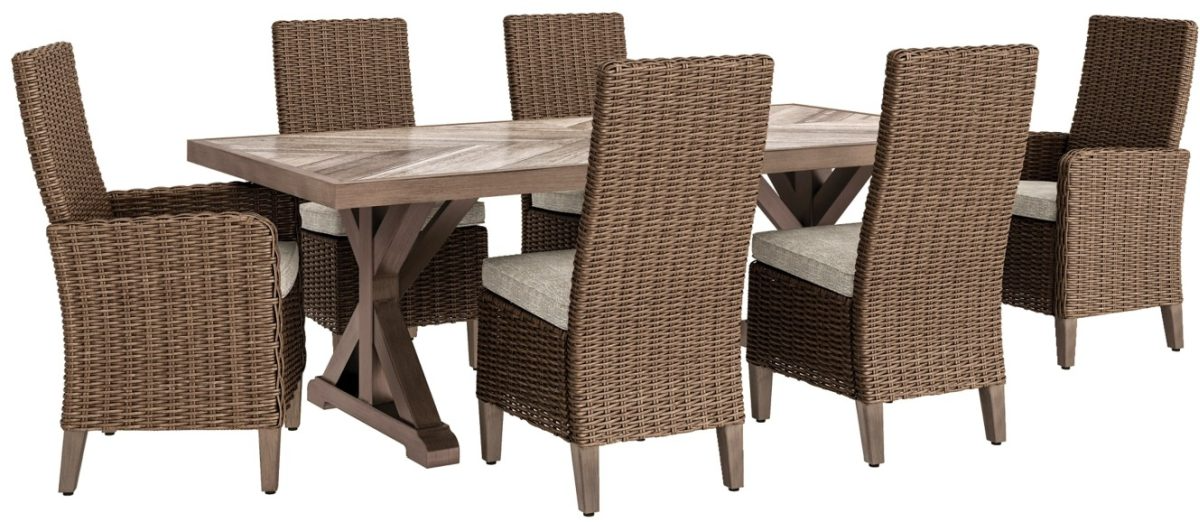 Sporting an easy-on-the-eyes look inspired by driftwood, this 7-piece dining set elevates the art of indoor-outdoor living. Beautiful and durable enough for indoor and outdoor use, the brilliantly styled dining chairs entice with plush, removable cushions wrapped in high-performing Nuvella® fabric that are a breeze to keep clean.Read More