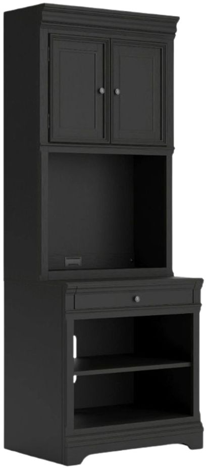 Make a style statement with this home office bookcase. Its traditional design is updated with an on-trend vintage black finish. A hutch with LED underlighting shines a light on those elusive reading glasses and other desktop items. The bookshelf, drawer and cabinet space add up to a well-organized work area.Read More