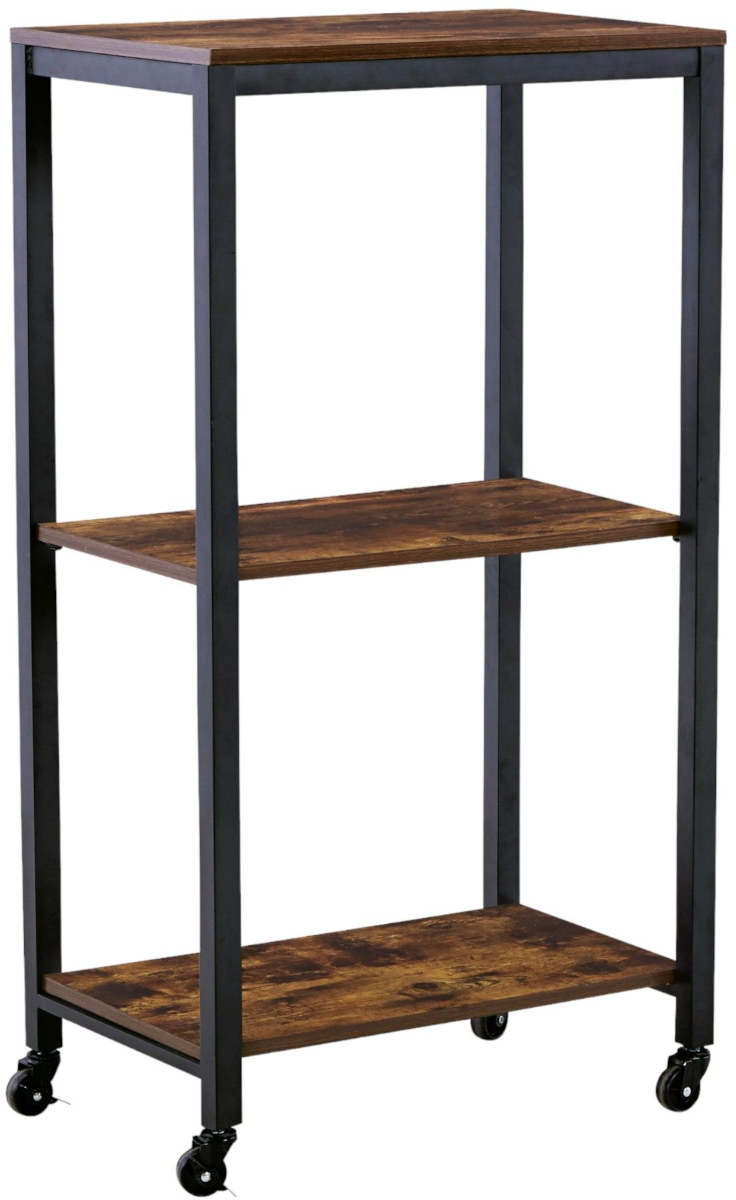 Impress your party guests in style with this bar cart. It features a sturdy design, with black metal rails and an antiqued brown wood finish on the three shelves for a relaxed feel. Smooth-gliding casters offer easy mobility.Read More