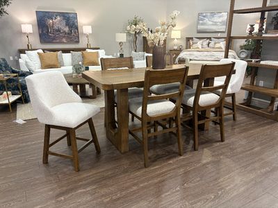 *Counter table, 4 wood back barstools, and 2 upholstered back swivel barstools, any other products that may be displayed are sold separately. Images may not represent the actual size and color in images may differ in person. See store for the actual color or finish.