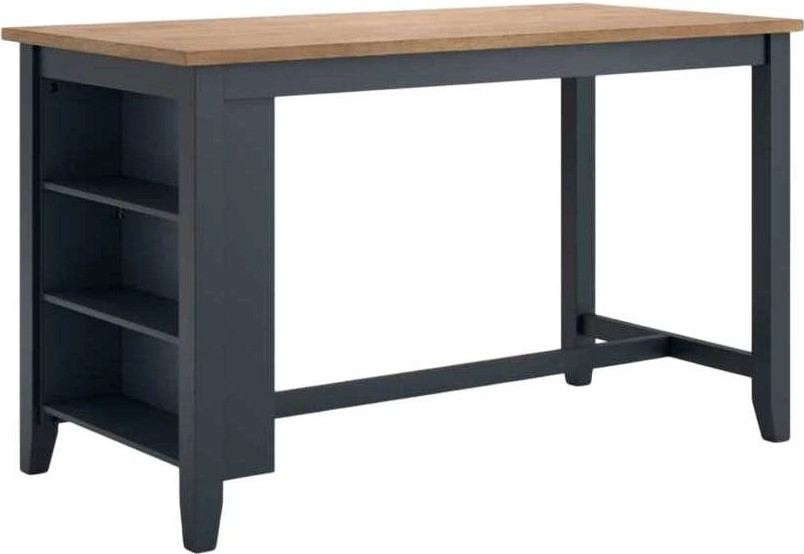 Complement your home’s simply relaxed sensibility with this counter height dining table. A dark blue hue offers a chic contrast to the natural wood tone, for a casual look that vibes with a variety of aesthetics. Built-in storage shelves keep kitchen and work accessories easily accessible.Read More