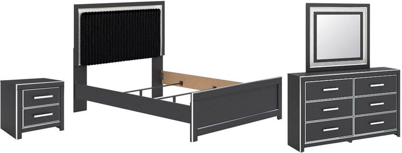 Set includes queen panel bed, nightstand, dresser and mirror