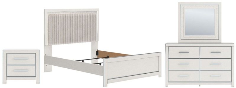 Set includes king panel bed, nightstand, dresser and mirror