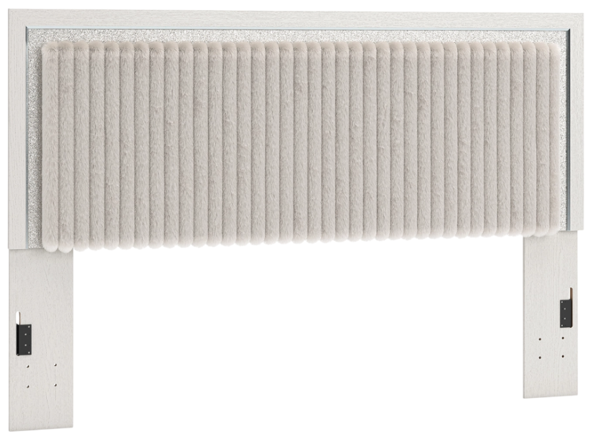 If glitz and glam are your jam, you’re gonna love this king upholstered panel headboard. Gleaming glitter and dazzling chrome-tone touches are paired with tufted gray faux fur for a stunning pop of pizzazz. Loaded with serious sparkle and chic flair, it's a simply splendid way to wake up your inner sanctum’s style.Read More