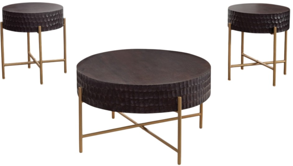 The 3-piece set includes the bobbi 30″ round solid wood coffee table and tow boobi 18″ round solid wood end tables. Each item also available