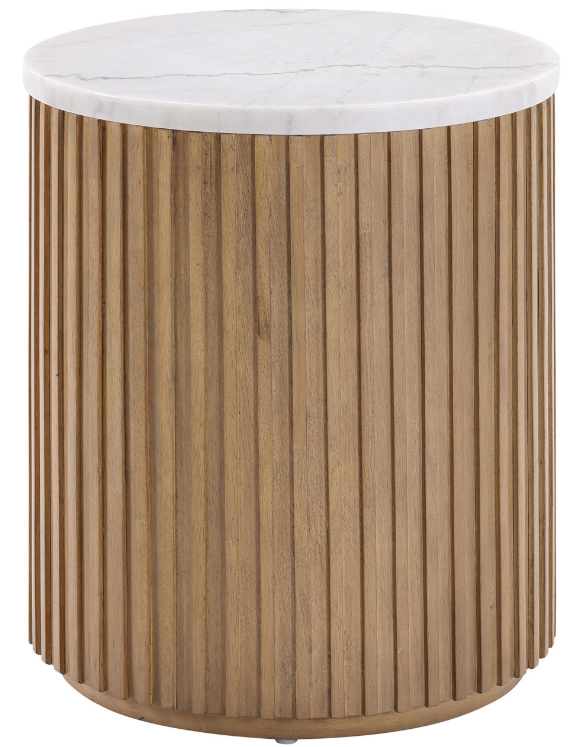 Expertly crafted of Oak and mango veneers, solid Asian hardwoods, engineered woods and white marble veneers