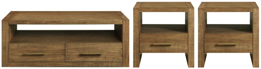 Bring casual elegance to your living room with the Garland 3-piece table set. At the center is the garland castered coffee table a stylish blend of modern design and rustic charm. Its clean lines and saw rasp distressing in a warm toffee finish create a stunning focal point.Read More