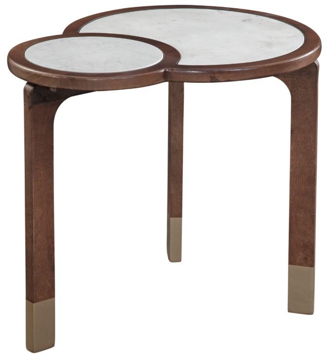 A blend of organic design and luxury, the Oormi end table brings sophistication in a compact form. Its three-legged asymmetrical silhouette adds visual intrigue, while the banswara white marble inlay contrasts beautifully with the cognac-finished solid Asian hardwood frame. Brass-tipped legs enhance its refined aesthetic.Read More